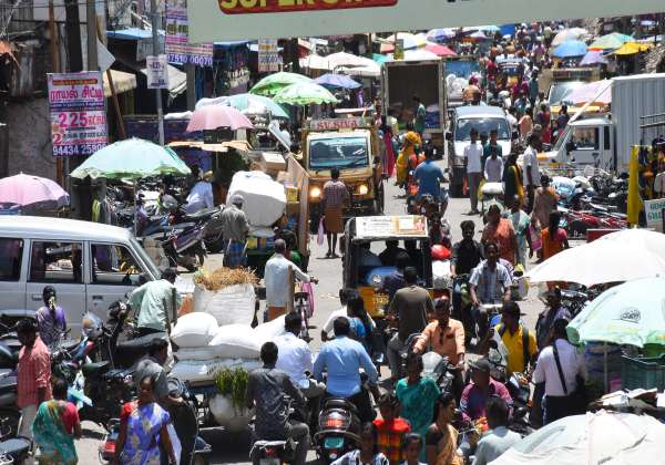 திண்டுக்கல்லில் பெய்த பலத்த மழையால் சென்ட்ரல் ரோட்டில் பெருக்கெடுத்து ஓடிய தண்ணீர்.