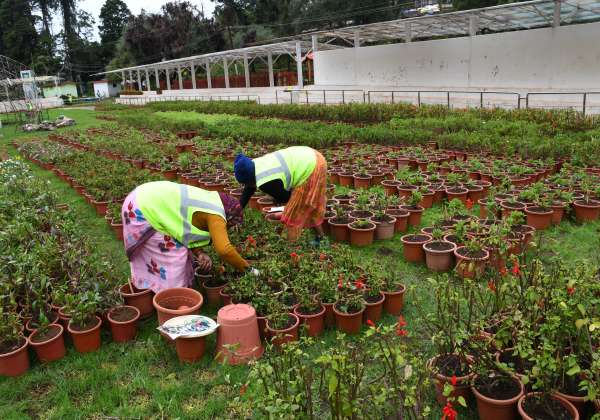 ஊட்டி தாவரவியல் பூங்காவில், இரண்டாம் சீசனுக்காக மலர் செடிகள் பராமரிப்பு பணி நடந்து வருகிறது.