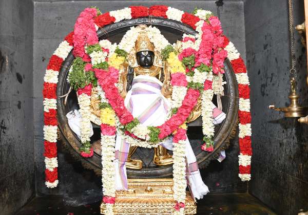 உடுமலை திருப்பதி வெங்கடேச பெருமாள் கோயிலில் சிறப்பு அலங்காரத்தில் சக்கரத்தாழ்வார் அருள்பாலித்தார்.