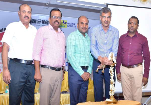 சிவகாசியில் தினமலர் நாளிதழ், சென்னை இன்ஸ்டிடியூட் ஆப் டெக்னாலஜி சார்பில் இன்ஜினியரிங் கவுன்சிலிங் வழிகாட்டி நிகழ்ச்சியை சென்னை இன்ஸ்டிடிட்யூட் ஆப் டெக்னாலஜி தலைவர் ஸ்ரீராம் குத்து விளக்கேற்றி துவக்கி வைத்தார்.(வலமிருந்து) கோவை கற்பகம் இன்ஸ்டிடியூஷன் மாணவர் சேர்க்கை பிரிவு தலைவர் சுப்புராஜ்,கல்வி ஆலோசகர் அஸ்வின், தமிழ்நாடு பொறியியல் சேர்க்கை செயலாளர் புருஷோத்தமன்,பி.எஸ்.ஆர். பொறியியல் கல்லூரி முதல்வர் மாரிசாமி.