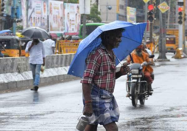 தேனியில் பெய்த தொடர் சாரல் மழையில் குடை பிடித்தபடி சென்ற பொதுமக்கள்.