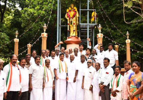 கடலூரில் முன்னாள் முதல்வர் காமராஜரின் பிறந்த நாளையொட்டி அவரது உருவ சிலைக்கு மாநில செயலாளர் சந்திரசேகரன் உள்ளிட்ட தலைவர்கள் மாலை அணிவித்து மரியாதை செலுத்தினர்.