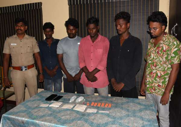 , திண்டிவனம் ராஜாங்குளம் பகுதியில் கஞ்சா மற்றும் போதை மாத்திரை விற்பனை செய்த சிலம்பரசன், செல்வகுமார், நவீன், மணிகண்டன், தினேஷ். ஆகியோரை திண்டிவனம் டவுன் போலீசார் கைது செய்தனர்.
