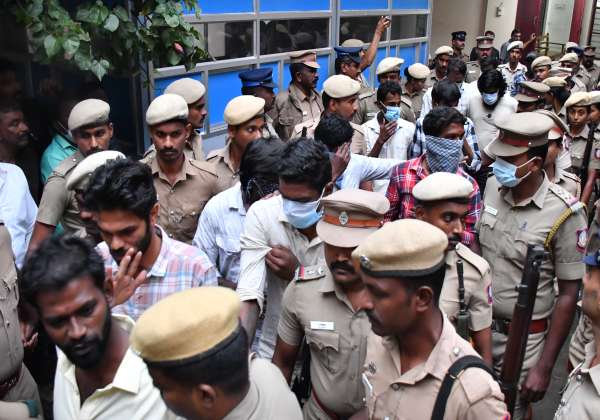 கோவையில் இன்ஜினியர் கொலை செய்யப்பட்ட வழக்கில் இரட்டை ஆயுள் மற்றும் ஆயுள்சிறை விதிக்கப்பட்ட 12 பேரை சிறையில் அடைக்க அழைத்து சென்ற போலீசார் .