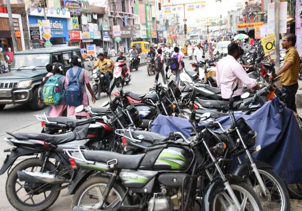 விழுப்புரம் நேருஜி சாலை ஓரங்களில் இரு சக்கர வாகனங்களை நிறுத்தி வைப்பதால் போக்குவரத்து வாகனங்களுக்கு ஆபத்தான பயணம் காட்சியளிக்கிறது இடம் பழைய நகராட்சி அருகே