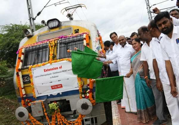 மேட்டுப்பாளையம் ரயில் நிலையத்திலிருந்து கோவை வழியாக போத்தனூர் வரை செல்லும் பயணிகள் ரயிலை மத்திய இணை அமைச்சர் முருகன் கொடியசைத்து துவக்கி வைத்தார்.