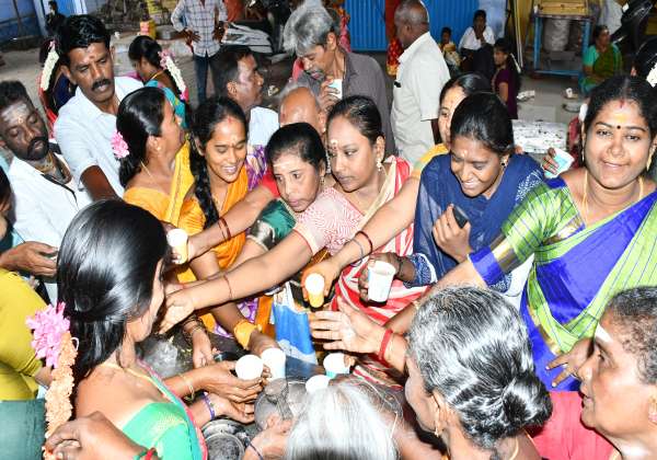 ஆடி முதல் வெள்ளியை முன்னிட்டு திருப்பூர், தாராபுரம் ரோடு கோட்டை மாரியம்மன் கோவிலில் கூழ் ஊற்றிய பக்தர்கள்.