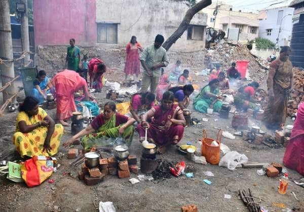 திண்டுக்கல் முத்தழகுபட்டி புனித செபஸ்தியார் சர்ச் திருவிழாவில் விடியவிடிய நடக்கும் அன்னதானத்திற்கு மொகா சைஸ் பாத்திரத்தில் சமையல் செய்து தூக்கி சென்றனர்.