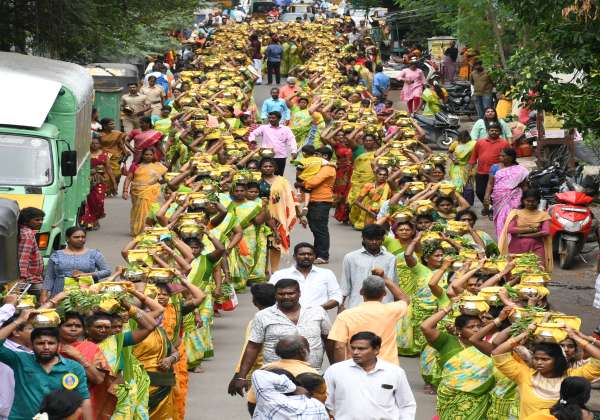 சென்னை புதுவண்ணாரப்பேட்டை ஆடி முதல் வெள்ளியை முன்னிட்டு செல்லியம்மன் கோவிலில் 1008 பால்குடம் எடுத்து நேர்த்திக்கடன் செலுத்திய பக்தர்கள்.
