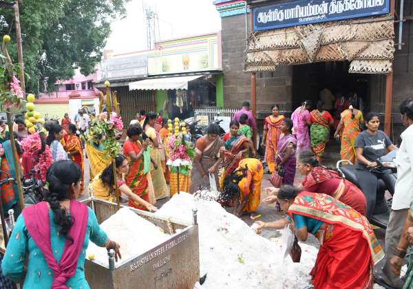 பொள்ளாச்சி மாரியம்மன் கோவிலில் பீடத்தின் மீது உப்பு கொட்டி வழிபாடு செய்தனர்.
