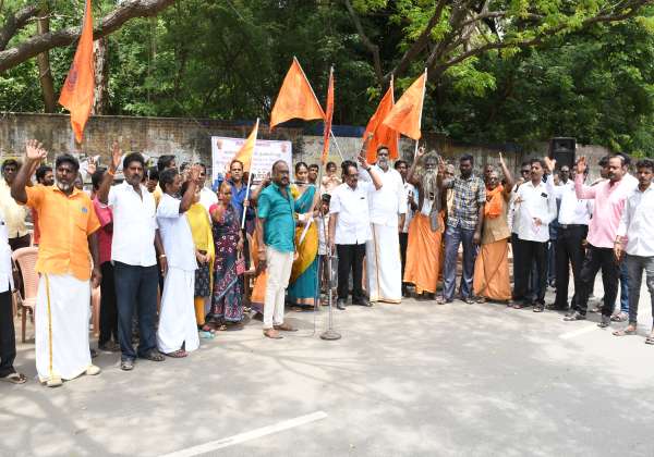 புதுச்சேரியில் உள்ள பல்வேறு கோவில் இடங்களை ஆக்கிரமித்து மதுபான கடைகளை நடத்துபவர்களை கண்டுகொள்ளாத இந்து சமய அறநிலைத்துறை கண்டித்து, இந்து முன்னணி சார்பில் கண்டன ஆர்ப்பாட்டம் நடந்தது. இடம்: மறைமலை அடிகள் சாலை.