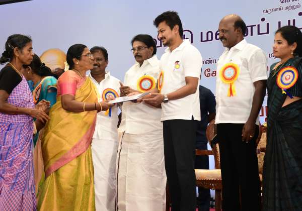 வருவாய் மற்றும் பேரிடர் மேலாண்மை துறை சார்பில் வீட்டுமனை பட்டா வழங்கும் விழா நடைபெற்றது இதில் அமைச்சர் உதயநிதி பயனாளிகளுக்கு வீட்டுமனை பட்டாக்களை வழங்கினார் இடம். நீலாங்கரை