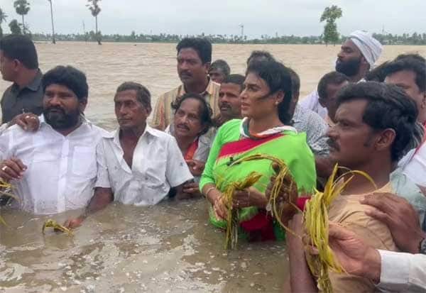 ஆந்திர மாநிலம் கோதாவரி மாவட்டத்தில் வெள்ள பாதிப்பை அம்மாநில காங்., தலைவர் ஒய்.எஸ்.சர்மிளா பார்வையிட்டார்.