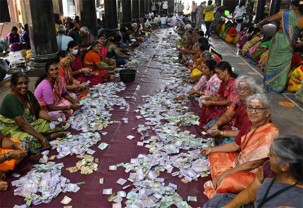திருவண்ணாமலை அருணாசலேஸ்வரர் கோயில் ஆடி மாதம் பவுர்ணமியில் பக்தர்கள் செலுத்திய உண்டியல் காணிக்கைகளை எண்ணும் பணியில் கோயில் ஊழியர்கள் ஈடுபட்டனர்.