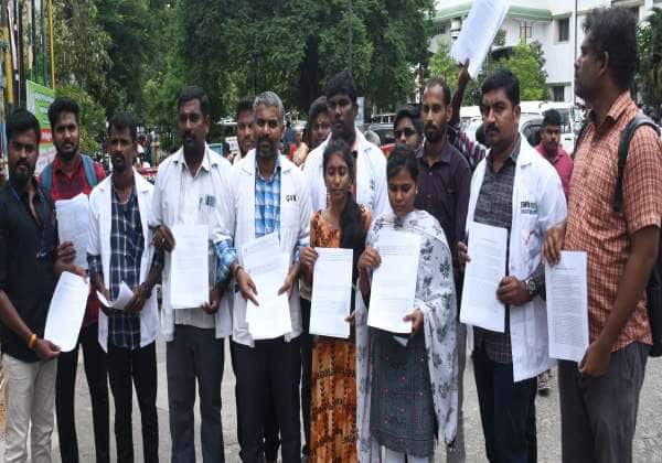 108 ஆம்புலன்ஸ் தொழிலாளர் சங்கத்தின் சார்பில் கோவை கலெக்டரிடம் மனு கொடுக்க வந்தனர்.