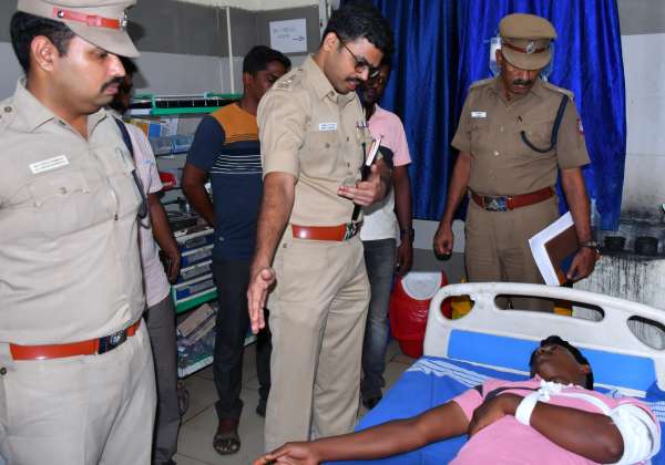 சிவகங்கையில் காயம்பட்ட எஸ்.ஐ. பிரதாப்பை எஸ். பி. டோங்கரே பிரவீன் உமேஷ் பார்வையிட்டார்.