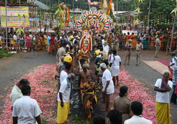மேட்டுப்பாளையம் அருகே உள்ள வன பத்திரகாளியம்மன் திருக்கோயிலில் ஆடி குண்டம் திருவிழா நடந்தது. நேர்த்தி கடன் செலுத்துவதற்கு நீண்ட வரிசையில் நின்று குண்டம் இறங்கிய பக்தர்கள்.