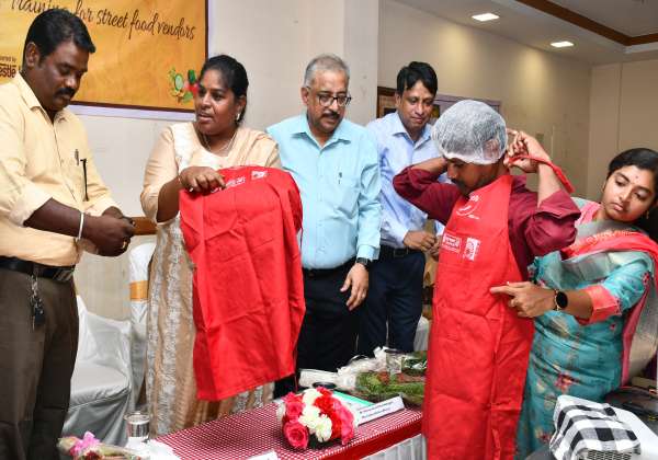 திருப்பூர், ரமணாஸ் ஓட்டலில் உணவு பாதுகாப்பு துறை சார்பில் குறு சிறு வியாபாரிகளுக்கு பயிற்சி மற்றும் பாதுகாப்பு கிட்டினை மாவட்ட உணவு பாதுகாப்பு அலுவலர் விஜயலலிதாம்பிகை வழங்கினார்.