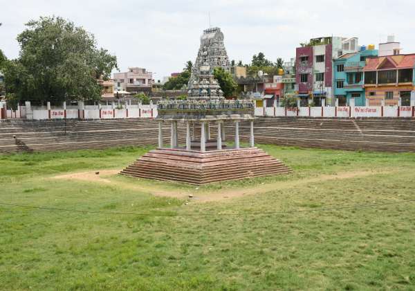 சென்னை திருவொற்றியூர் தியாகராஜ சுவாமி கோவில் ஆதிஷேச தீர்த்தக்குளம் வறண்டு காணப்படுகிறது.