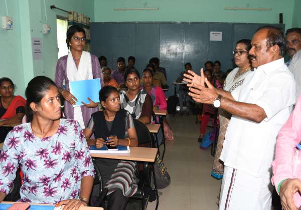 திருவள்ளூர் மாவட்ட வேலைவாய்ப்பு மற்றும் தொழில்நெறி வழிகாட்டும் மையத்தில் தொழிலாளர் நலன் மற்றும் திறன் மேம்பாட்டு துறை அமைச்சர் அமைச்சர் சி.வெ.கணேசன் திடீரென்று ஆய்வு செய்தார் அப்பொழுது அங்கு குரூப் 2 தேர்வுக்கு பயிலும் மாணவ மாணவிகளிடம் கலந்துரையாடினார். உடன் சுந்தரவல்லி ஆணையர் வேலைவாய்ப்பு மற்றும் பயிற்சித்துறை அலுவலர் உள்ளனர்